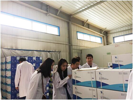 最后,同學(xué)們參觀了公司的成品庫,對獸藥產(chǎn)品的性狀、作用用途、用法用量進行了學(xué)習(xí)。